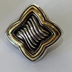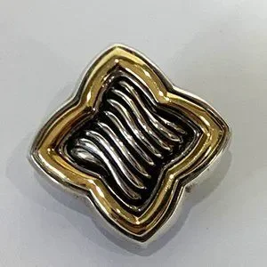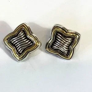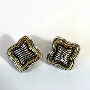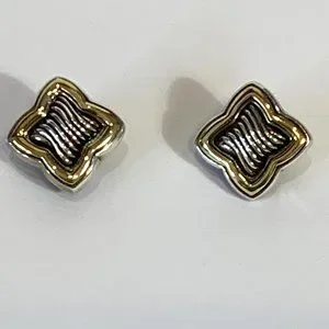 David Yurman Quatrefoil earrings in sterling silver and 18K yellow gold. The overall size of each earring is 20mm x 20mm with a net weight of 20.6g. Stamped 750 925. The earrings are finished with butterfly backs.