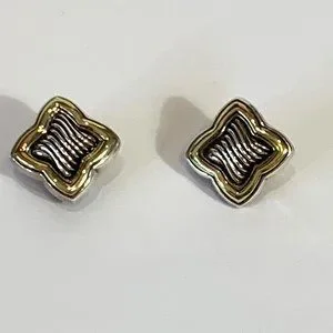 This is an authentic pair of DAVID YURMAN Sterling Silver 18K Yellow Gold Quatrefoil Earrings. The earrings are crafted of sterling silver and feature 18 karat yellow gold framing a sculpted cable center.