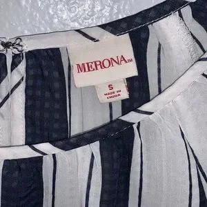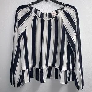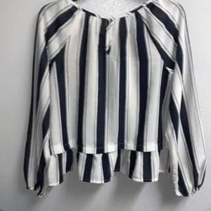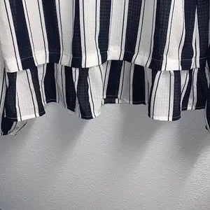 Navy Blue Striped Blouse Sz S