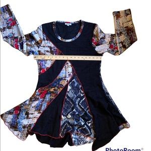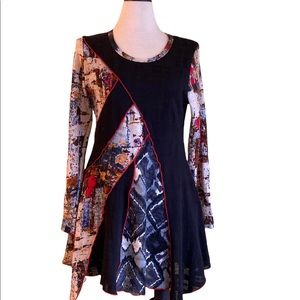 Paris, beautiful, multicolored tunic, short dress, patchwork, uneven hem, stretchy, L,