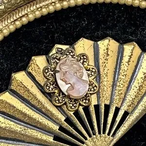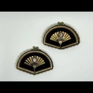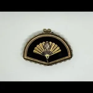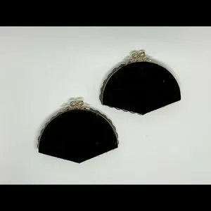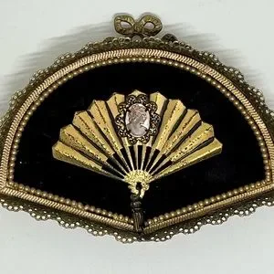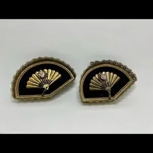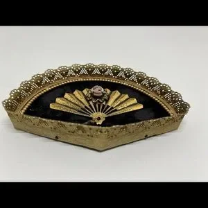 Vintage Pair of two velvet brass decor fans. Approximately 4”