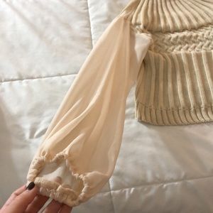 Worn once - pale pink (almost cream) sweater with sheer sleeves; slightly cropped