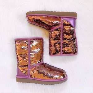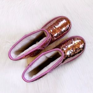 New In Box- UGG Women’s Classic Short Sequin Pink Boots With UGGplush Lining And Insoles, Satin Binding And Treadlite By UGG Outsoles.