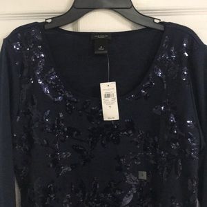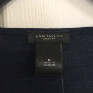 You were buying Ann Taylor Factory Navy Sequence Shirt . Small. Measurements by hand chest 18” shoulder 16” , total length