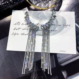 Super sexy and fashionable long tassel rhinestone drop earrings for women.