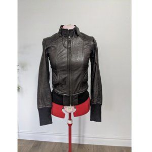 Danier Leather - coffee brown leather jacket bomber. Inside the jacket has a grey lining, beautifully crafted with wool around the waist and cuffs.