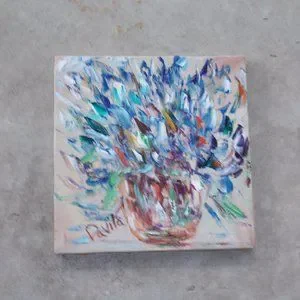 New, Original "Paris Blue Floral" oil painting, 10"x10"