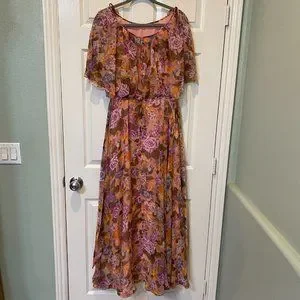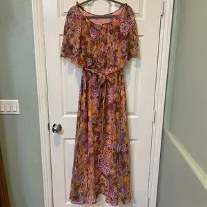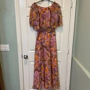 70's Vintage Handmade, Fully lined Chiffon & Taffeta floor length gown
