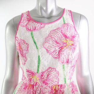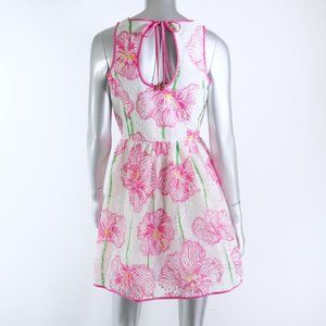 This dress is: feminine, fun. Features flattering fit and flare silhouette and keyhole back accent.