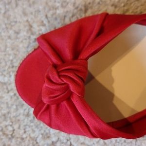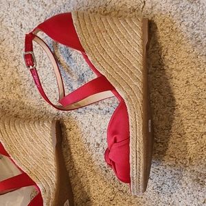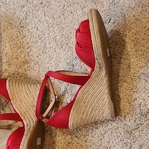 L.K. Bennett Angeline Red Satin Wedge Espadrilles