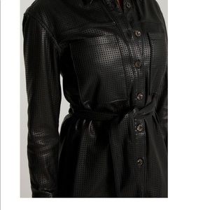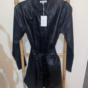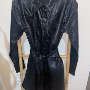 Sleek & stylish shirt dress featuring curve accentuating belt and flirty side slit. Can be glammed up or down! Front closure, point collar, long sleeves, lined. Size 1 fits like a US size 2-4.