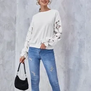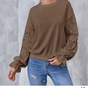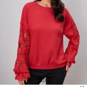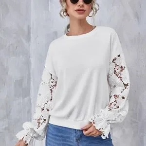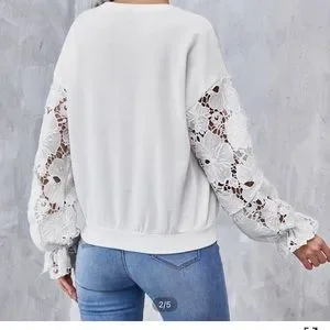 Drop shoulder lace sleeve pullover