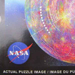 Great gift for the space enthusiast on your list, 750 piece NASA planet jigsaw puzzle, with foil effect print on the puzzle. Measures 20" x 27" when completed. Weight is 1 lb 2 oz for shipping. In excellent made once condition, with no missing pieces.