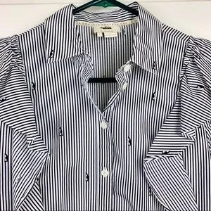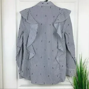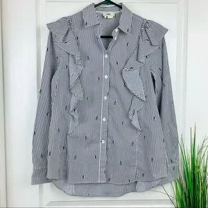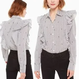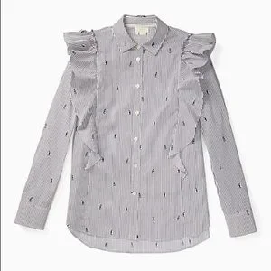 NWOT Kate Spade Penguin Print Stripe Ruffle Blouse