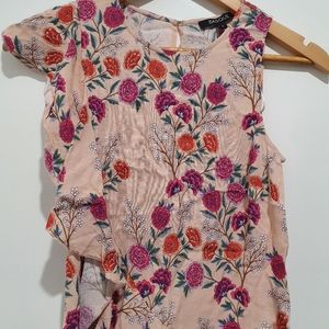Basque size 6 floral sleeveless top with ruffle side detailing NWOT