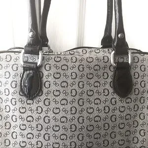 🆕⭐️GUESS SUPER SUPER CUTE PURSE BLACK&GRAY COLORED&G ALL OVER THE PURSE!!THE GUESS TAG(SEE PIC)ONE SIDE IS PATENT&THE OTHER SIDE IS THE PATTERN OF THE PURSE IT IS REVERSIBLE!! SPACIOUS BAG WITH SEVERAL POCKETS!!BEING KEPT IN STORAGE LAST PIC ON HANDLE SLIGHT CRACKING NOT NOTICEABLE REALLY AT ALL NWOT!!⭐️⭐️