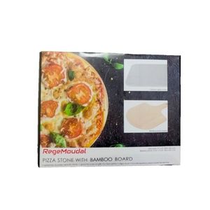 Ceramic Pizza Stone; 12" X 1 5" (30.5 X 38.1 cm) Bamboo Pizza Board; 1 1.25" X 1 5.25" (28.6 X 38.7 cm)