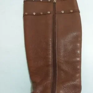 Grab these stylish and versatile Tory Burch knee-length boots. Crafted from brown leather, they are great for everyday wear. They are styled with round toes, gold-tone stud detailing that carry the brand logo and zip closures. They are finished with durable leather soles.