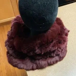 Rich wine genuine sheared rabbit fur. Knitted crocheted 5 layer connections. Soft stylish & super warm. Can be worn around the neck or as a hat. Very versatile