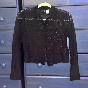 Slightly cropped lace button down. Worn once, like new condition. Made of a cotton blend material, so it’s very soft and not at all scratchy like other lace! Cute real button cuffs.