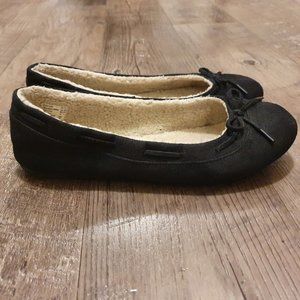 Excellent used condition. Black suede-look ballet flats with sherpa-like lining. Soft, warm, and comfortable. Outdoor shoe that feels like a slipper. Get the best of both worlds: the cozy comfort of a slipper and the cute style of a flat! Airwalk's Flake Ballet features a rich faux suede upper, cute decorative lace, soft faux shearling lining and a lightweight, flexible outsole. Check out other listings in my closet and bundle to save 10%!