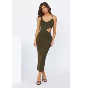 NWT Hello Molly Sweet Lines Khaki Midi Dress