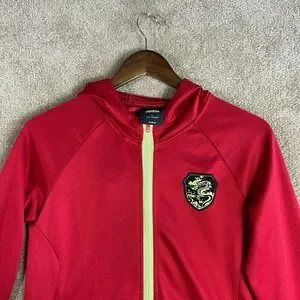 Adidas Track Jacket Youth Boys Size Large L Red Full Zip Hooded Zipped Pockets