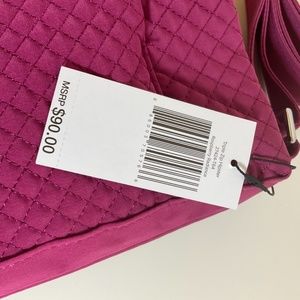 Vera Bradley Quilted Microfiber Triple Zip Hipster Crossbody in Raspberry Radiance. This crossbody bag has three zipper compartments and is perfect for organizing all of the essentials! The front compartment is an open space with a zip closure. The second zipper compartment has two slip pockets and a zip closure. The main compartment has a zip pocket and a zip closure. There is also a slip pocket on back. The bag measures 11” W x 11” H x 1.5” D and has an adjustable strap. This item is NWT and retails $90. Offers welcome!