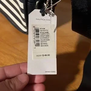 Brand new with tags. Navy nautical crossbody purse with cute red zipper pull. Small pocket inside. Matching wallet to go along with it.