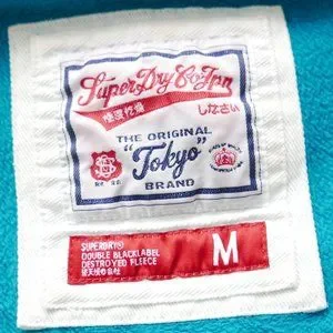 Like new. Premium quality. Super thick. Patch pockets. Industrial zipper. Blue green aqua color. Brand logos on chest and back. Orange brand label at wrist cuff. Cotton. Size M.