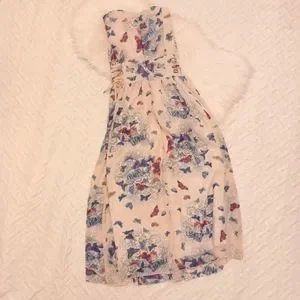 This beautiful dress has crisscrossed lace up bodice and is fully lined.