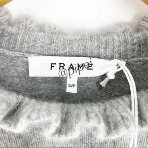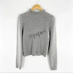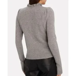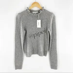 SOLD - NWT Frame Josefine Ruffle Neck Puff Sleeve Cashmere Sweater in Grey S