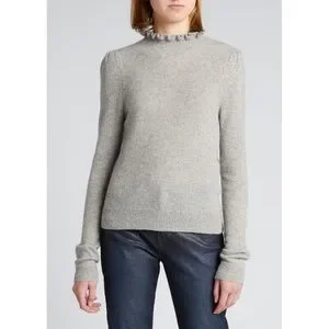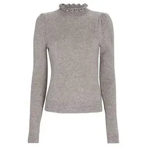 Frame Josefine Ruffle Neck Cashmere Sweater Jumper Pullover in Gris Heather / Grey / Gray size Small.
