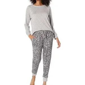 NWT Splendid Gray Leopard Hacci Pullover Jogger Pajama Set Size X-Large