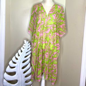 Bright Green & Pink Zebra Print Semi Sheer One Size Open Sleeve Duster Cover Up