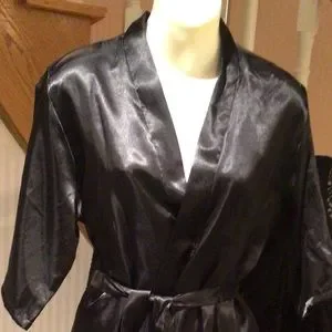 Black satin bridesmaid robe with matching belt. Silver rhinestone spelling bridesmaid no labels like new nylon worn 1 time listed as one size. Probably fits comfortable size:XS-M, could fit size:L. Contact me with any questions.