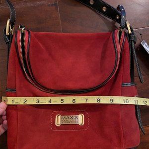 Maxx New york cranberry red Suede messenger bag and wristlet NWT