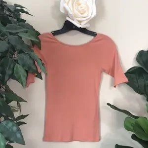 Ann Taylor Petite Ballerina Neck Cotton Stretch Top - Orange / Salmon Size XSP - NWT