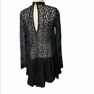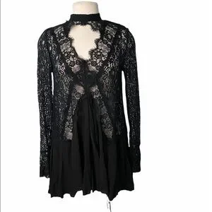 Free people black lace sheer long sleeve sz- small
