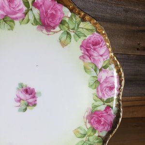 Vintage Wheelock China Plate Austria Decorative Roses Gold Trim Distressed