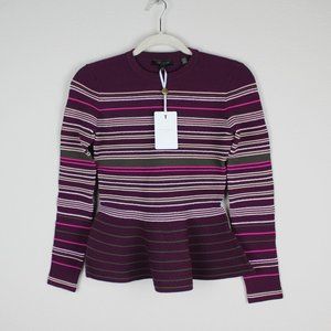 NWT TED BAKER LONDON Stripe Crew Neck Peplum Sweater