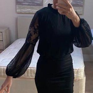 Black sheer sleeve lace long sleeve Top Classic