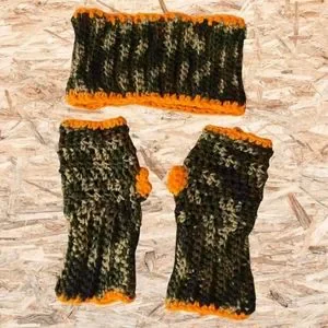 Hand made crochet ear warmer with matching mittens. Great for hunting. Very good hand made quality.