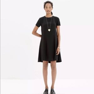 Madewell Tribune dress black sleek shapely seams, short sleeves, hook and eye back closure with keyhole opening, knee length, polyester size 4. Excellent condition!