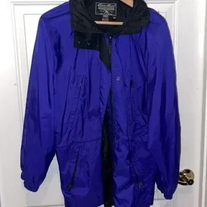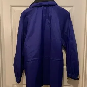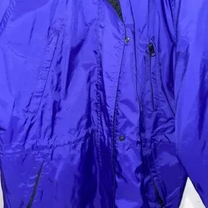 Purple/blue and black with multiple pockets and hidden hood that can be unfolded from caller perfect condition never worn super popular at the moment since everything vintage is in style again some of these jackets are selling for hundreds of dollars open to offers
