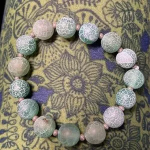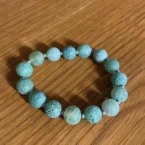Beautiful agate & Czech glass bead stretch bracelet. Beautiful ๐!!! Handmade by me! The stones are beautiful & all unique. Gorgeous Light blue/light greenish colored & comfortable to wear. Not too heavy & stones give a soothing feeling on your wrist! The stretch thread I used is a quality brand and is strong/thick.