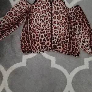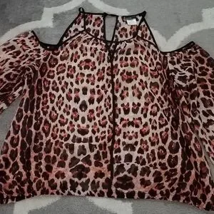 Sheer+ cold shoulder+ leopard print = SEXY! Great top for girls night out or date night with bae! Size 3x elastic at sleeves and bottom of blouse. 23 inches long, key hole opening in the front and back of blouse. From a smoke/pet free home