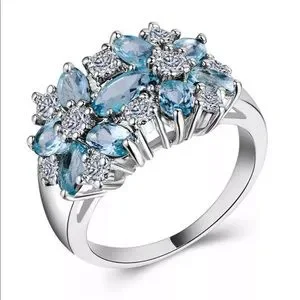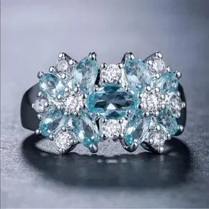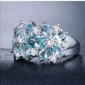 New 925 Silver Beautiful Flower Aquamarine Ring