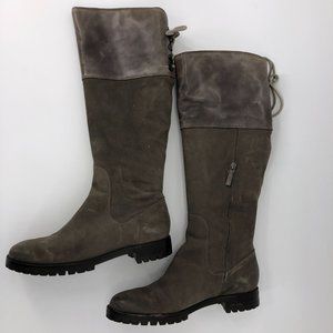 Cole Haan Nike Air Waterproof Knee High Boots Weathered Suede Leather Brown Lace