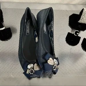 Adorable Coach Poppy ballet flats in the Caper style. Navy blue with silver hardware which includes rhinestones, jewels and the Coach emblem. These are in like new condition. See pictures for more details.